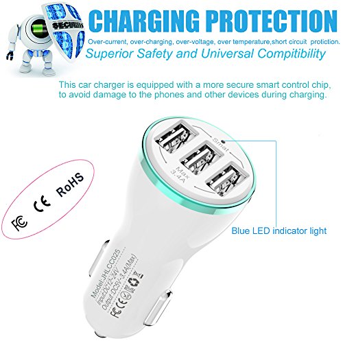 Bralon car charger with Smart Charging Technology automatically identifies connected devices and their unique charging requirements. When Charge multiple devices such as smart phones, tablets, GPS navigation devices simultaneously with this incredibly powerful 17W/3-port car charger, every USB charging port will deliver exactly the right amount of power to match your devices needs. Multi-Protect safety system and premium grade circuitry completely protection for you and your devices.