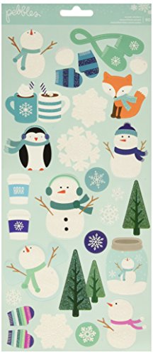 American Crafts 60 Piece Pebbles Winter Wonderland Icon Stickers Glitter 2 Sheets, 6 x 12"
