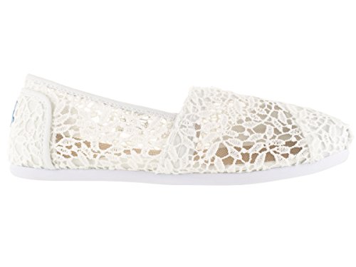 Toms Women's 10008033 Lace Leaves Alpargata Flat, White, 6.5 M US