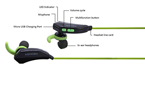 - Title : Koncen X11 Bluetooth 4.1 Wireless Sports Headset for Smartphone - Black & Green
