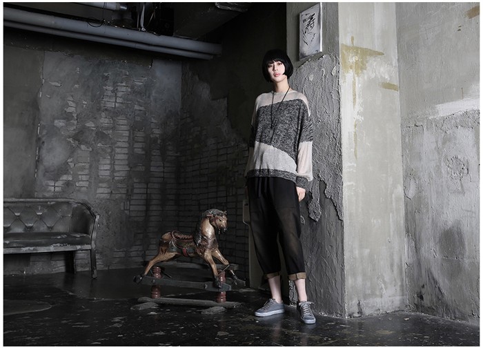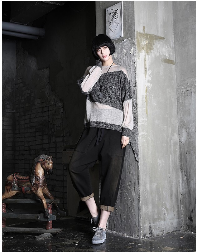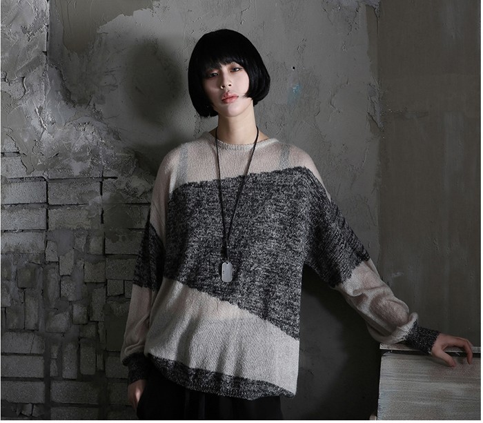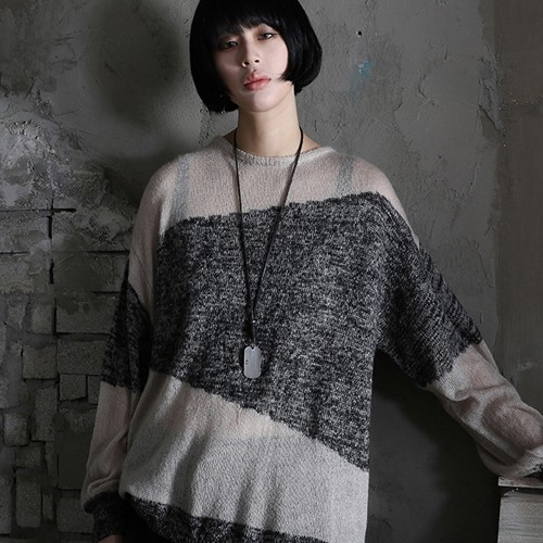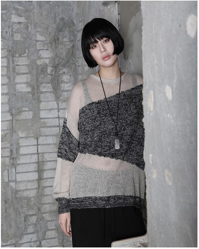 商品名:ニット レディース トップス Tシャツ 個性的 シースルー配色 秋 冬 2017 モード系 個性的 40代 ファッション