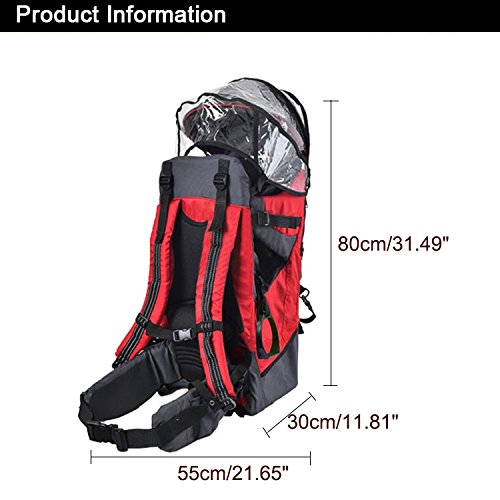 -. Feature : Material: Waterproof Oxford cloth + Polyester / Size: 30*55*80cm/11.81*21.65*31.50Inch(Length*Width*Height), bearing weight: 20kg / Scope of application: 6 months - 4 years old baby/Child/Kid(Height less than 110cm/43.30" and weight less than 20kg/44.09) / Function: Mountaineering; Walking; Shopping; Do housework; Travel / Package Included:1pcs X Baby Child Kid Toddler Backpack Carrier