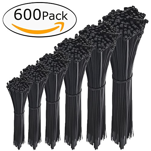 Deeram 600 Pack Adjustable & Durable Self-Locking Nylon Cable Zip Ties, 4/6/7/8/10/12Inch, 4mm Width, Black