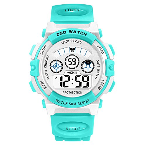 -. Feature : Digital Durable Waterproof sport watches. / Great Japanese quartz movement. / Alarm, LED backlight, stopwatch; date, day, month display. / Recommended age: 5-13 years old / It is a good gift for kids.