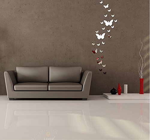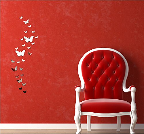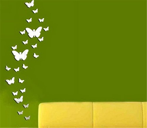 -. Feature : SAFE MATERIAL: our butterfly stickers are made of eco-friendly arylic, completely non-toxic and non-friable. It's surface is reflective and smooth like mirror but it won't cut your hand, nor will it be broken easily like mirror. / EASY TO USE: you can adhere or remove the decals easily but please PEEL the PROTECTIVE FILM OFF before pasting them. Dot double-side adhesive tapes are included in the package, which will help you stick and won't damage your paintings on the wall if you decide to remove them. / THREE SIZES: there are total 25 Pcs in a pack and 3 sizes available: 20Pcs Small 2.8"(7cm)* 1.6"(4cm); 3Pcs Medium 4"(10cm)* 2.6"(6.5cm) and 2Pcs Large 6"(15cm) * 3.8"(9.5cm). / PERFECT CHOICE: you can freely choose different pattern and unqiue combinations for your bedroom, nursery, window, fridge, cabinet, bathroom and TV background. Give yourself an opportunity to use imagination and creativity and bring surP.R.Ises for your families and friends! / 100% REFUND GUARANTEE: enjoy the lovely butterfly mirror decals or get your money back! Each item has passed our double check before sending to you, so we will guarantee your full satisfaction. You have any questions? Feel free to contact us!