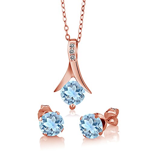 -. Title : 2.30Ct Sky Blue Aquamarine White Diamond 18K Rose Gold Plated Silver Jewelry Set
