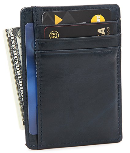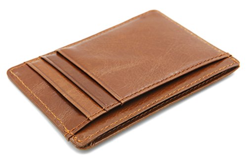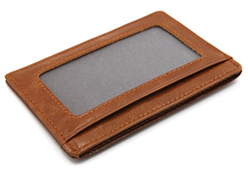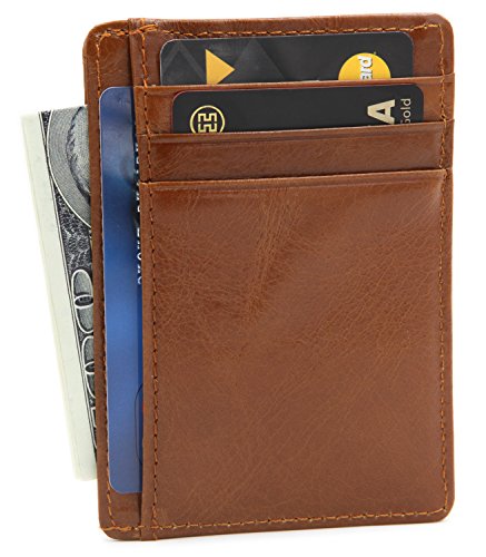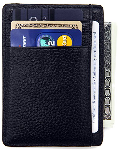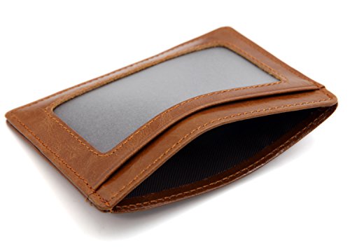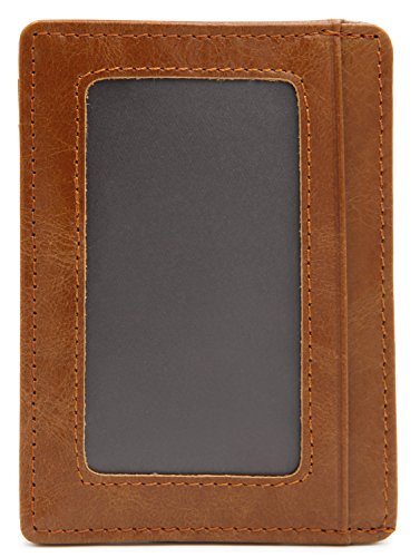 | DEEZOMO Leather Card Case Wallet Slim Super Thin 6 Card Slots Front Pocket |