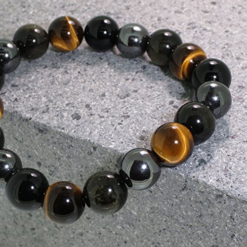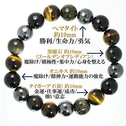 신쥬쿠은의 창고 신쥬쿠은의 장폭10mm 헤마타이토 흑요석 타이거 아이 오니(귀신) 키스 팔찌 18cm~19cm (맨즈M~L) 인기 천연석 파워 스톤