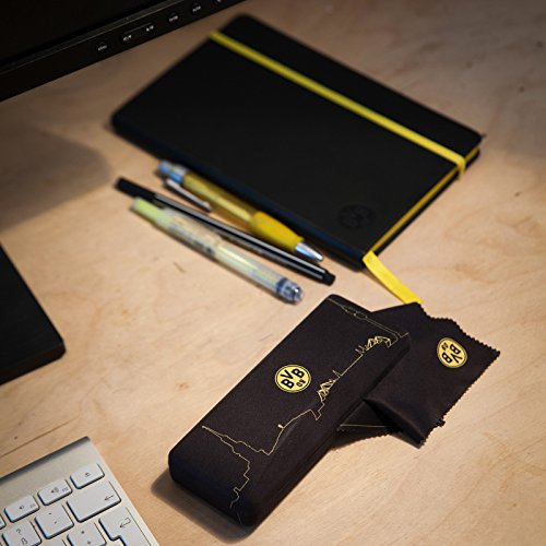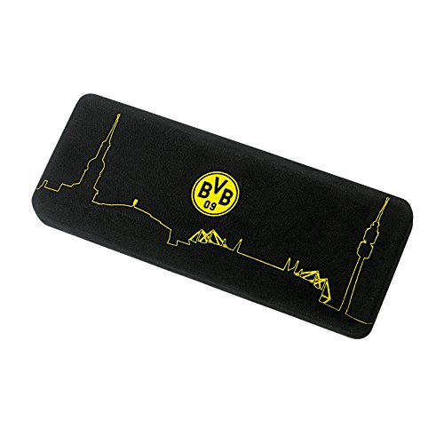 Borussia Dortmund Brillenetui, Schwarz, Metall/Polyester, 15,5 cm x 6,5 cm x 5 cm, Skyline-Design, BVB-Emblem, inklusive Brillentuch (schwarz)