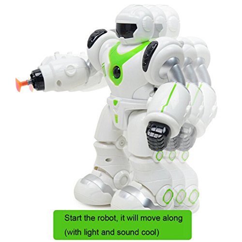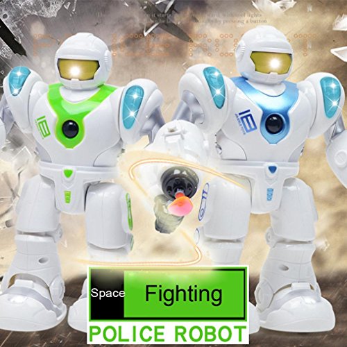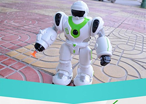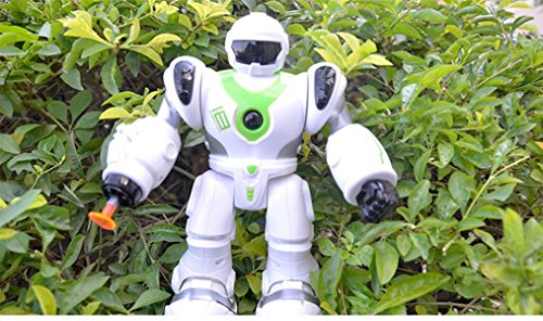 -. Feature : Item: Fun Fighting Robert Electronic Toys WithDynamic sound Toys Gift For Kids Children / Function: walk, slide, dance, singing, programmable,one key demonstration,gesture sensing,cool light / The transmitter only needs 2 AA Batteries (not included in box) / The entire machine body uses green ABS plastic material / The robot remote control mode and gesture sensing mode