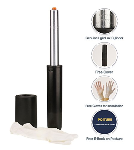 LykeLux Office Chair Gas Lift Cylinder Replacement – Heavy Duty Construction & Universal Size – Fix Sinking Chairs & Enjoy Maximum Comfort - Cylinder Cover, 1 Pair Of Gloves & An E-book Free
