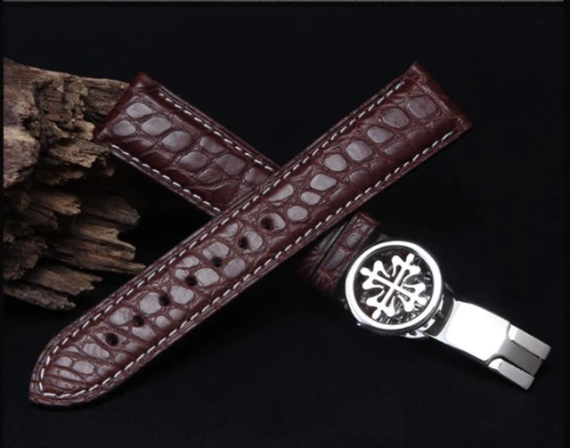 | [해외]도매 가격 수제 정품 악어 가죽 시계 밴드 19 미리메터 20 미리메터 21 미리메터 22 미리메터 가죽 스트랩 럭셔리 브랜드 버클 실버 |
