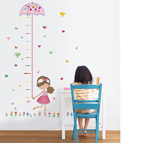 -. Title : Winhappyhome Pretty Girl Children Height Sticker Growth Measurement Wall Art Stickers for Girls Room Living Room Nursery Background Removable Decor Decals