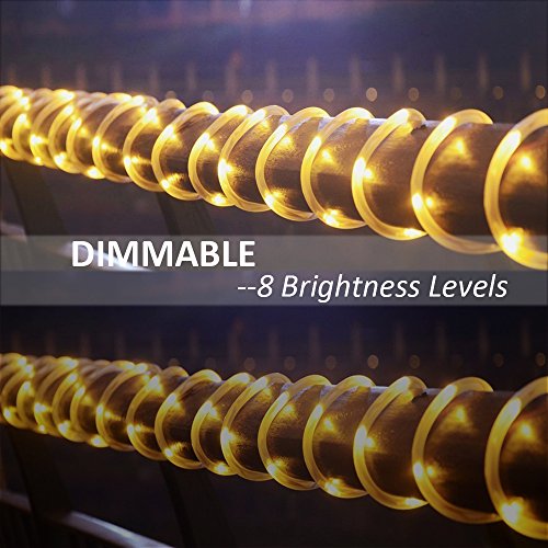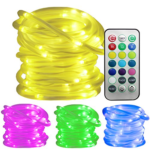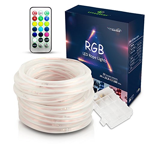 Ustellar 33ft RGB LED Rope String Lights, Waterproof Outdoor Color Changing Fairy Lights with Remote Control/ Timer, 8 Brightness Levels, Battery Operated (Not Included)