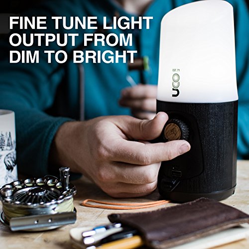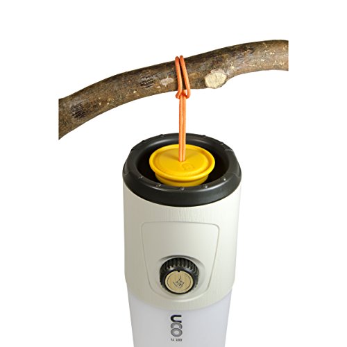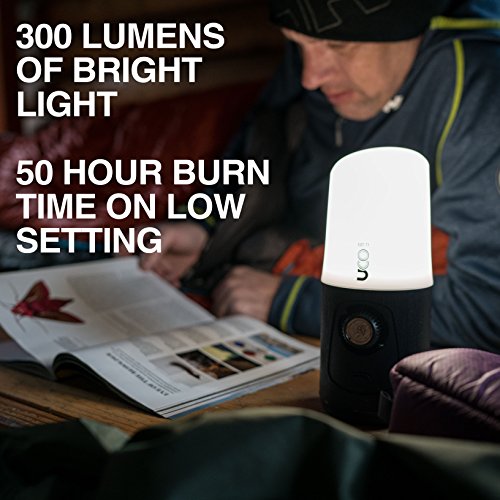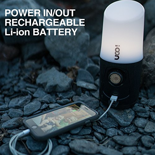 Studio : UCO Publisher : UCO Binding : Sports Product Description The UCO Madrona Hang-Out Tabletop Lantern features three super bright LED bulbs for 300 lumens of light output to light up camp or any nighttime environment. The Madrona is available in two styles (sold separately): Either powered by an included rechargeable Li-ion battery, which runs up to 6 hours on high, or powered by 3 D-Cell batteries (not included), which last up to 24 hours on high. The Madrona includes a USB power port for charging a phone or device, and a nifty storage compartment to hide the included USB cord, keys, or other small valuables. The UCO Madrona features an infinity dial to allow fine tuning of light output from dim to high, and, in blue LED mode, the UCO Madrona Plus acts as a great camp night-light. The Madrona features a quick-release magnetic lanyard hanging system that allows for quick attachment and removal of the lanyard. Elevate the Madrona by using the lanyard to hang it from a tent, tree, or post, then use the quick-release magnet to release the lantern and place it on its base on a table or other flat surface. The UCO Madrona Hang-Out Lantern is durable and water resistant to IPX4. Dimensions: 9 inches x 3.7 inches x 3.7 inches (24 cm x 9.5 cm x 9.5 cm). Weight with Li-ion battery, 0.91 pounds. (413 g). Weight with 3 D-Cell batteries, 0.84 pounds (384 g). 1-year manufacturer’s warranty. 0