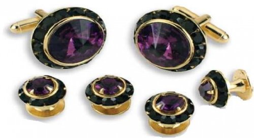 Product DescriptionDark Purple Stone Center Austrian Crystal Tuxedo Studs and Cufflinks Gold Trim0