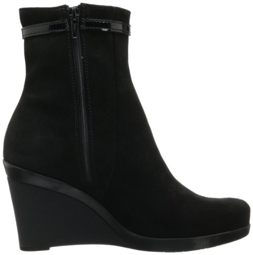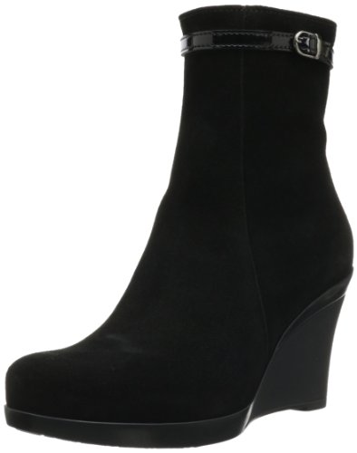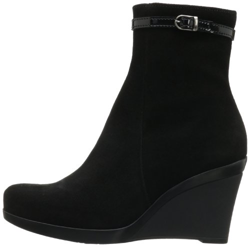 Product DescriptionSoft suede is stylishly interrupted by a high gloss, buckled strap in this wedge bootie.0