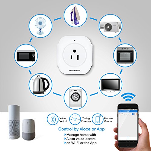 Smart Plug WiFi, NewRice 15A Mini Wireless Smart Socket Outlet Works With Amazon Alexa, Timing Function, Remote Control Your Devices Anywhere, No Hub Required (15A -2 Pack)
