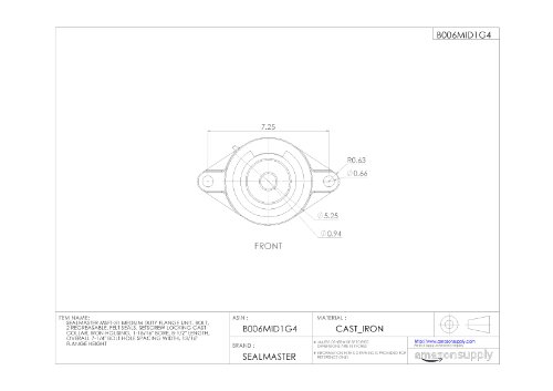 Sealmaster MSFT-31 Medium Duty Flange Unit, 2 Bolt, Regreasable, Felt Seals, Setscrew Locking Collar, Cast Iron Housing, 1-15/16" Bore, 8-1/2" Overall Length, 7-1/4" Bolt Hole Spacing Width, 13/16" Flange Height