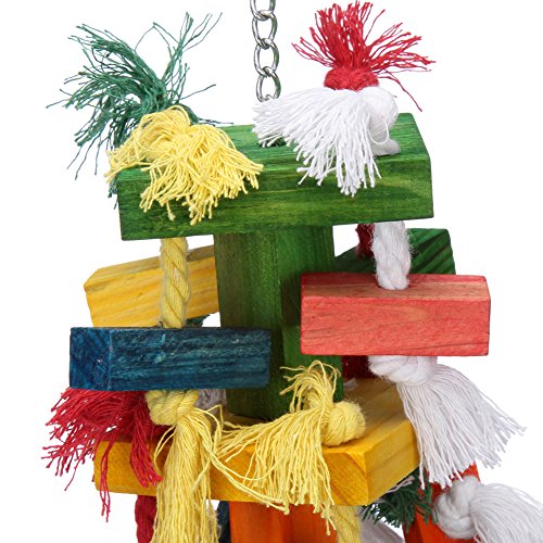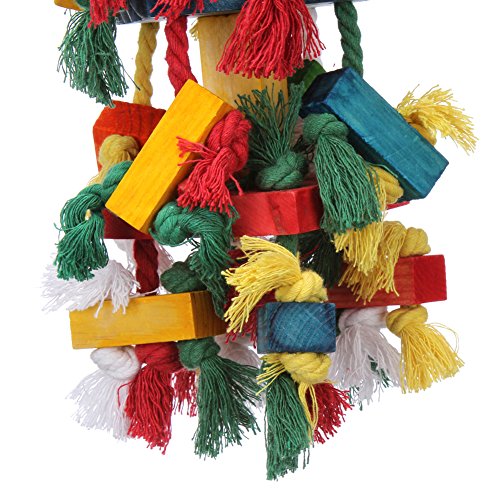 - ✔ MULTICOLORED --- The rainbow of colors and the frayed texture of the rope featured in the design of these super fun wood bird toys intrigues and engages your parrot in order to encourage instinctive foraging behavior, thus extending and boosting play time!