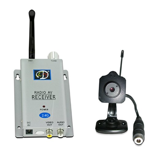 -. Feature : 380TVL of horizontal definition, Micro-camera easy for installation, Micro-body with needle hole lens, / Wireless camera kits, camera ajustable by manual for the frequency / 100m transmmission distance without block / Audio monitoring with mircophone in camera / Manual tune buttome on receiver to get a clear video