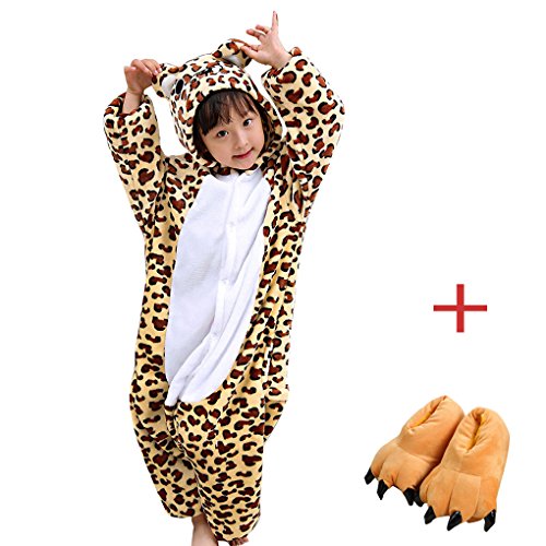 -. Title : DREAMOWL Kids Animal Costume Cosplay Leopard Plush Pajamas Attach PAW Shoes