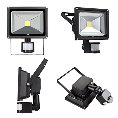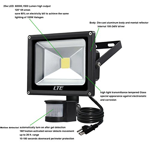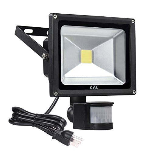 LED Motion Sensor Floodlight Plud In, LTE 20W Waterproof LED PIR Sensor Security Lights, 6000K, 1500 Lumen, US 3-Plug, Adjustable Lighting Duration and Sensitivity Outdoor