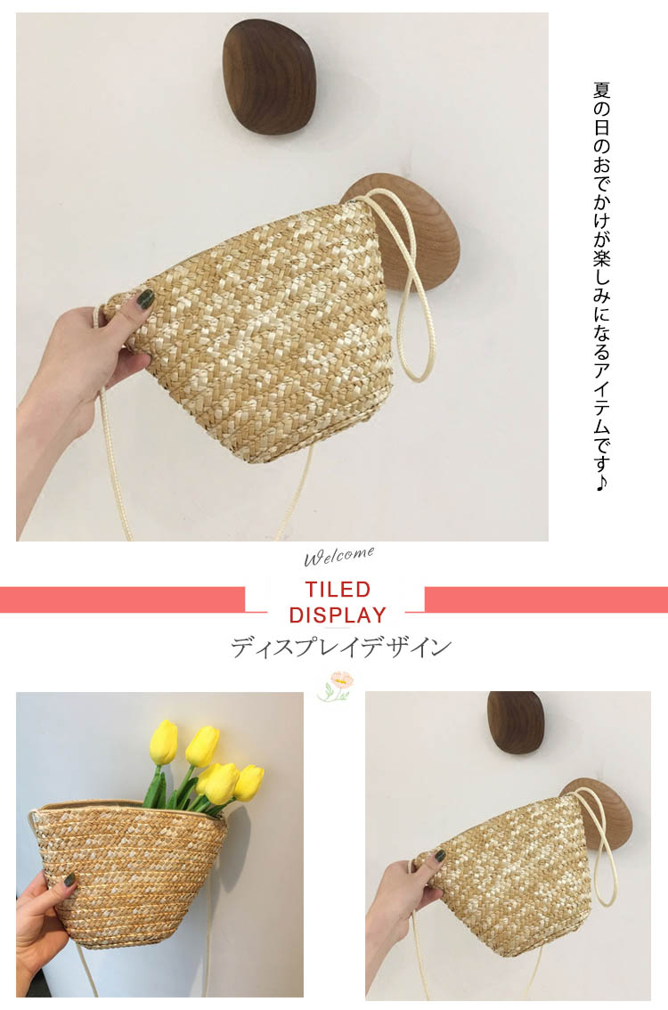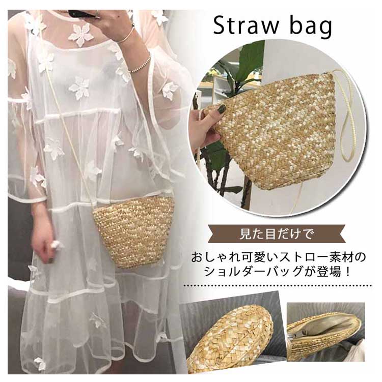 | 見た目だけでおしゃれ可愛いストロー素材のショルダーバッグが登場!丁寧に編み込まれた温かみのあるストロー素材で季節感を演出してくれます。開口はファスナータイプで中身が見えないから、持っていて安心! バッグの内側は、汚れを弾きやすい麻素材仕様。 夏の日のおでかけが楽しみになるアイテムです♪ | |