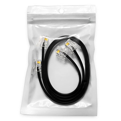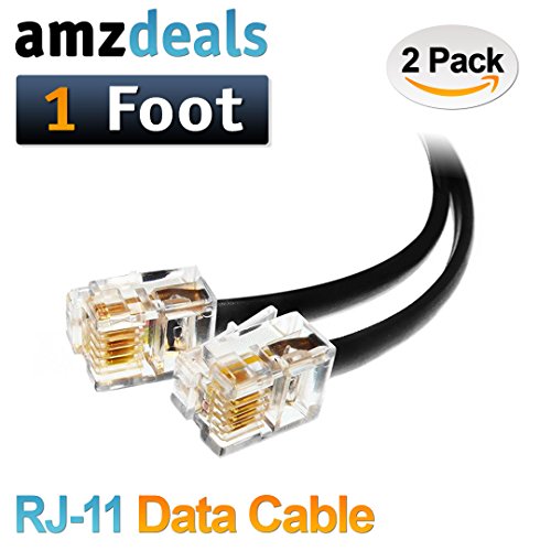 (2 Pack) 1 Foot RJ11 6P4C Data Cable, Male to Male 12 inch Modular Data Cord (Black - Straight Wiring)