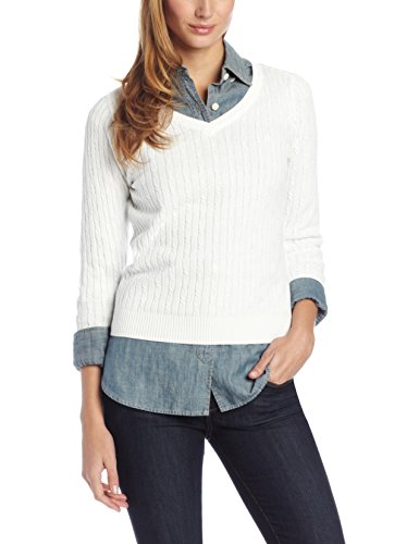 V neck cotton cable sweater