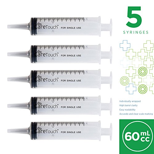 60ml Catheter Tip Disposable Syringe with Covers - 5 Sterile Syringes by Care Touch