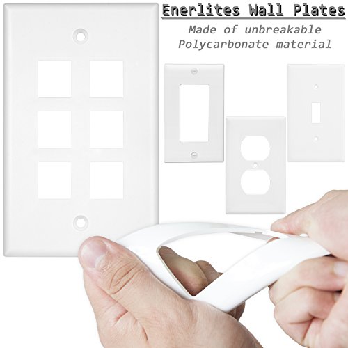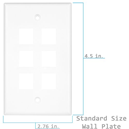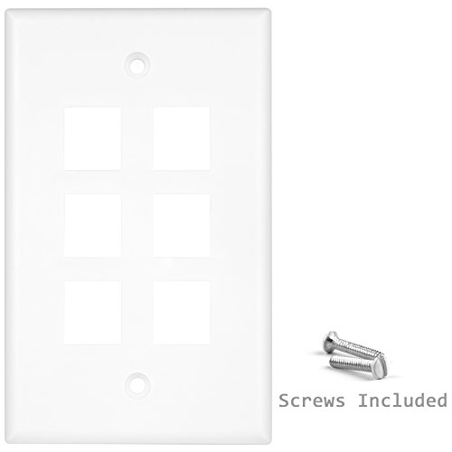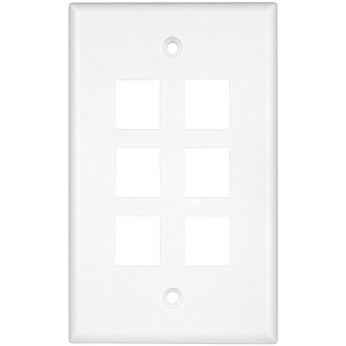 Enerlites 8876-W 1 Gang 6-Port Multimedia Wall Plate for Voice/Data and Audio/Video Keystone Modules, White