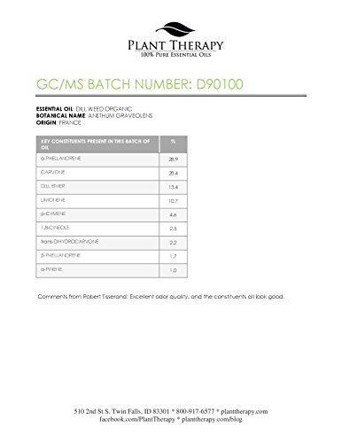 HAVE QUESTIONS?: Plant Therapy's certified aromatherapists are happy to help you with your Organic Dill Weed Essential Oil questions via Amazon Messages. We welcome your questions and input!