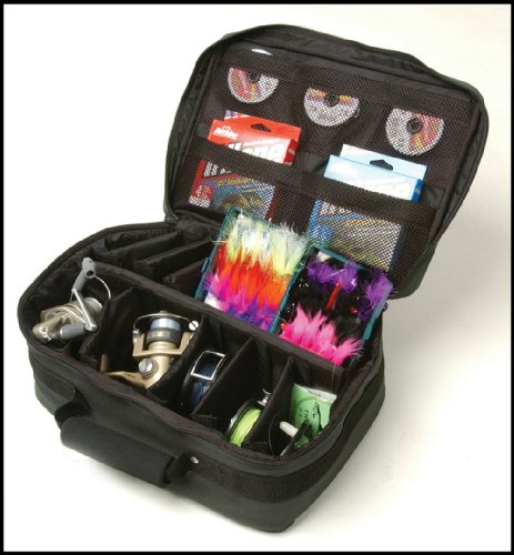 -. Feature : Provides plenty of storage for up to 10 reels with adjustable internal dividers / Soft shell exterior provides plenty of protection, completely padded on all sides of the case / Plenty of extra storage with the five mesh lined internal pockets for extra line, leaders, hooks and fly boxes / Made of red 600 denier fabric, a nice padded handle with saltwater proof nylon easy glide zippers / This is a great reel case for storing all sizes of spinning reels bait casters and fly fishing reels or extra spools, provides a dust free environment for your entire reel collection