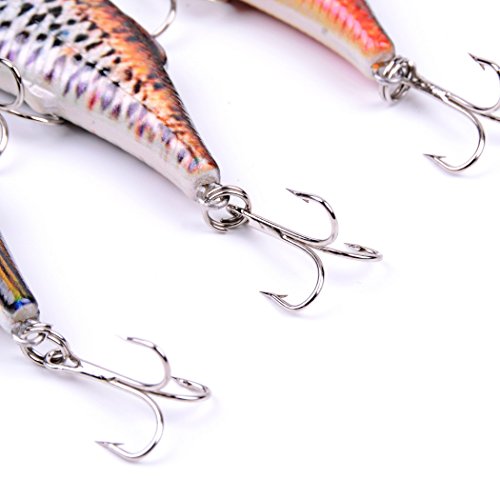-. Feature : Weight/Length: 11.8g/8cm / Hard lures life-like swimming action in the water, 3D stereoscopic eyes, more realistic and vivid / Each comes with 2 sharp treble hooks which make fish difficult to decouple / Work great for both saltwater and freshwater.Productive when trolling, surfcasting on salmon, sea trout, striper, musky etc. / Super Fishing Lures Set for predatory fish such as Pike Bass Trout Zander.