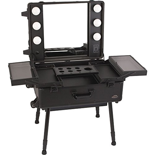 Sunrise Scuola Led Lighted Rolling Makeup Case Professional Nail Travel Wheel Organizer, Black Matte, 36 Pound