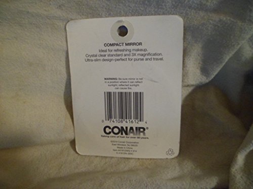-. EAN : 0074108416124 -. Feature : Conair Compact Mirror / Sold as 1 unit only / Ideal for refreshing makeup / Crystal clear standard and 3x magnification / Ultra slim design perfect for purse and travel / Picture of Disney's good evil on front of makeup case -. Label : CONAIR -. Manufacturer : CONAIR -. ProductGroup : Beauty -. ProductTypeName : MISC_OTHER -. Publisher : CONAIR -. Studio : CONAIR -. Title : 24PC BUCKET FUSHION COMPACT -. UPC : 074108416124