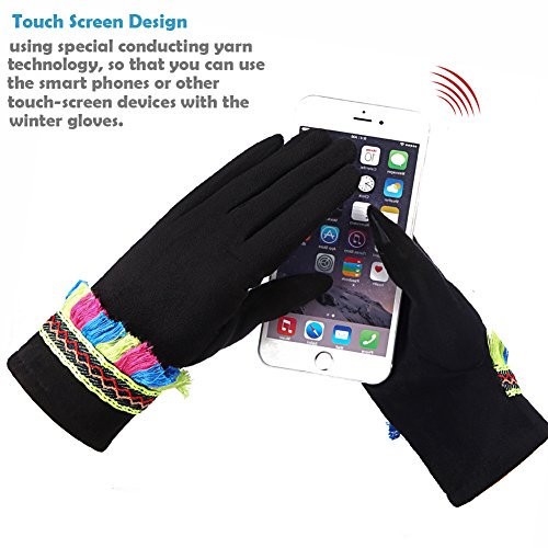 Product Features ★When you use your smartphone with the winter black gloves, it helps to keep your fingers warm in every situation ★These winter gloves for women offer enough dexterity you need, do not worry about that the touch gloves are too bulky to restrict the flexibility of your fingers! ★Your hands are not bulky even you are wearing the winter weather gloves women, as the ladies winter gloves have a slim exterior.