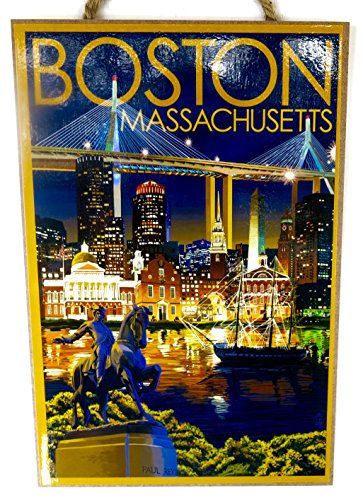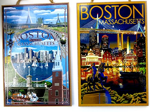 Boston Massachusetts, Souvenir, Wall Decor, 10'x7' Wood Wall Plaque, Set of Two