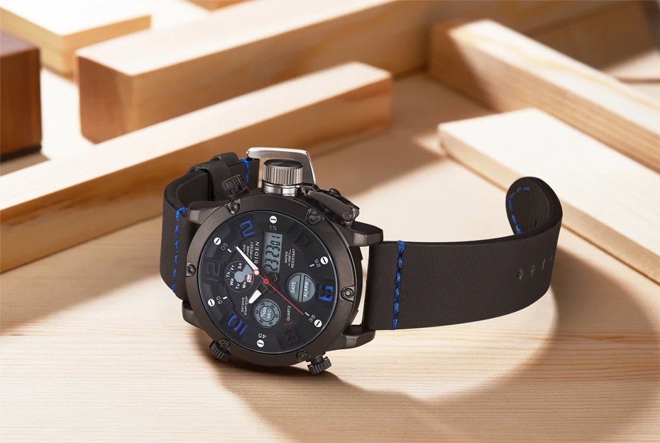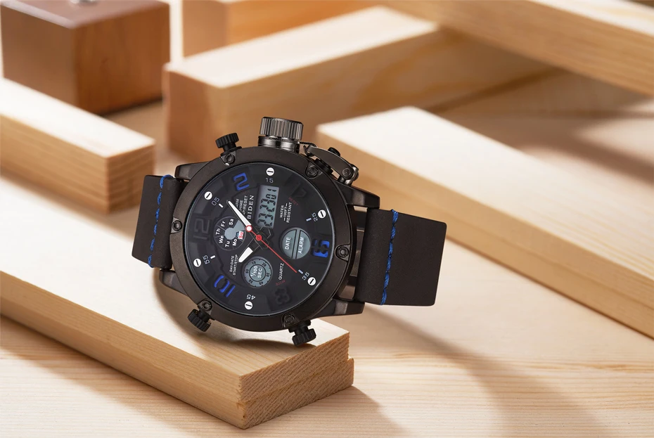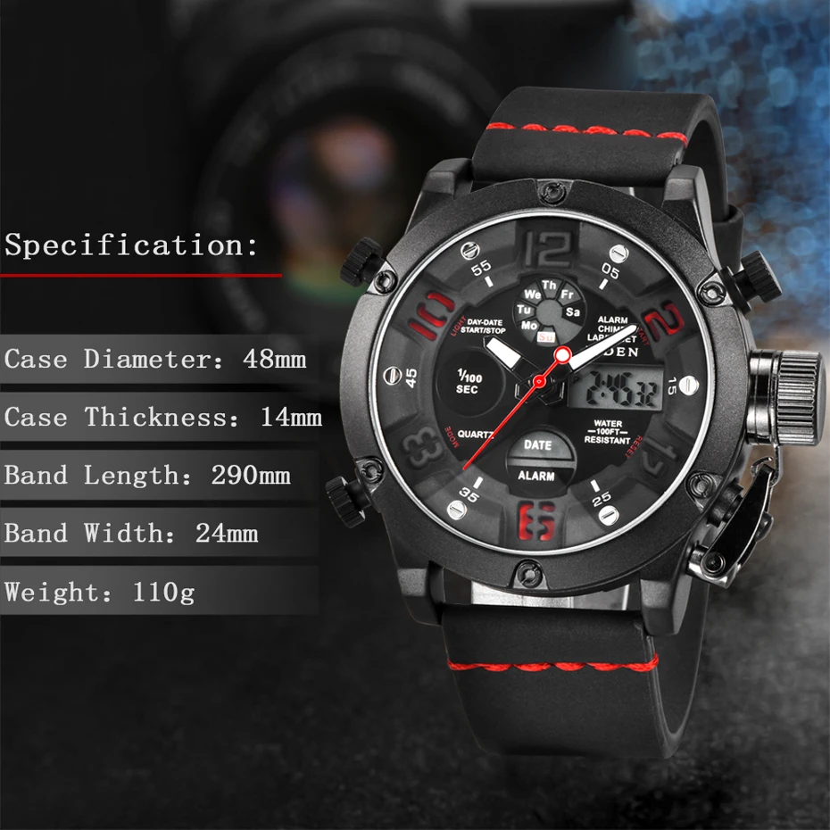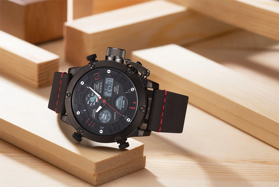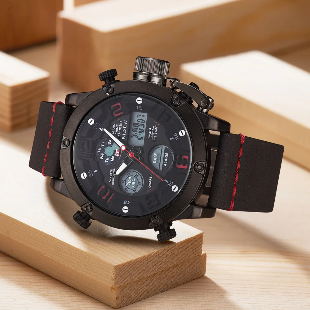 Feature:Water Resistant,LED display,Stop Watch,Auto Date,Complete Calendar,Week Display,Shock Resistant,Alarm,Chronograph