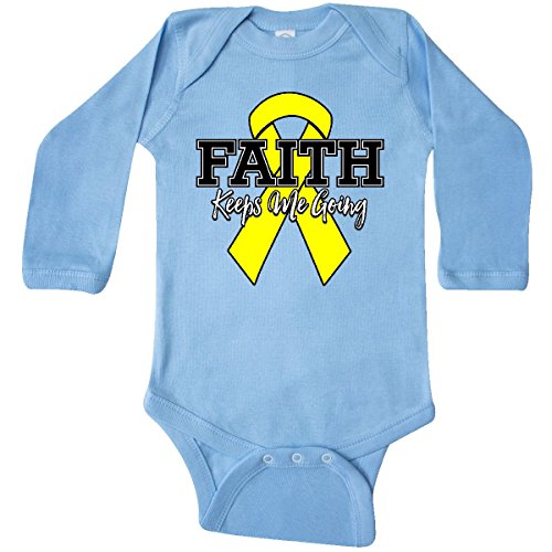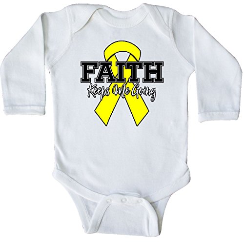 Binding : Apparel Product Description Faith Keeps Me Going Long Sleeve Creeper for yellow ribbon awareness causes and support. A yellow ribbon stands for Adenosarcoma, Endometriosis, Ewings Sarcoma, Osteosarcoma, Sarcoma, Spina Bifida, Suicide Prevention, Testicular Cancer and other causes. 0