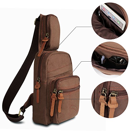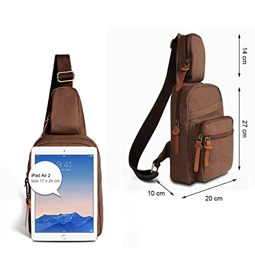 -. Feature : 600D waterproof Nylon with SBS Zipper / Size: 25*35*12CM / 9.8*13.7*4.7 Inch, Strap :30-45CM/ 11.8-17.7Inch / Constructure: Totally 8Compartments. 1* Main compartment for Ipad, Textbook,etc.1* Inner Ipad pocket,can hold ipad Air2 and tablet.1*Mug Pocket.1*back zipper side slot pocket for cellphone or money. 3*front pocket,1* side pocket. / Function: An adjustable and removable shoulder strap. One-shoulder strap design, the bag can act as a single-shoulder bag or sling bag, or a cross-body pack. / It is a great daypack for school, dating, shopping and traveling in daily life. Although it is not waterproof, it can also be carried for outdoor activities, such as running, cycling, camping, etc. It is a great gift for your boyfriend, husband, father and son.
