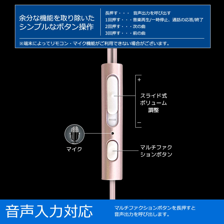 音声入力対応、リモコン操作可能カナル型イヤホン