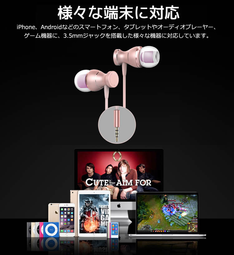 iPhone、Androidなどのスマートフォン、タブレットやオーディオプレーヤー、ゲーム機器に、3.5mmジャックを搭載した様々な機器に対応しています。
