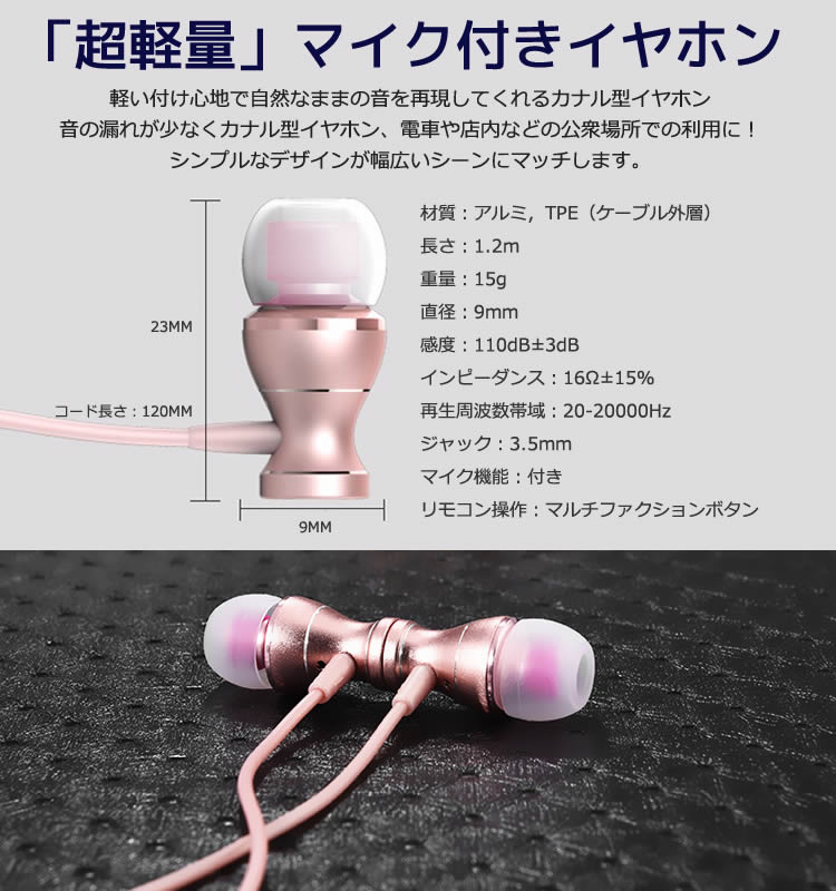 「超軽量」マイク付きイヤホン