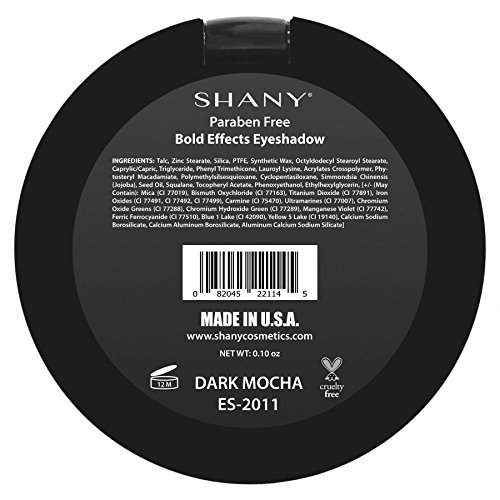 From the creators of the masterpiece 7 layer all-in-one makeup set, SHANY brings you their brand new bold eye shadow collection. Our bold shades have strongest pigmentation of any of our eye shadows. These eye shadows glide on like colorful velvet on your lids. They are richly pigmented, true to color, and hypoallergenic. This formulation is Paraben free and is perfect for all skin tones and types. Our dual purpose wet or dry eye shadow can achieve countless long-lasting looks for everyday to the runway. These easy to blend shades are stylishly packaged in a slim black compact. To increase the lasting power of your gorgeous look, pair it with the new SHANY Paraben-free eye primer. Since the product is Paraben free, you shall use it within 12 months. Made in USA.Feature