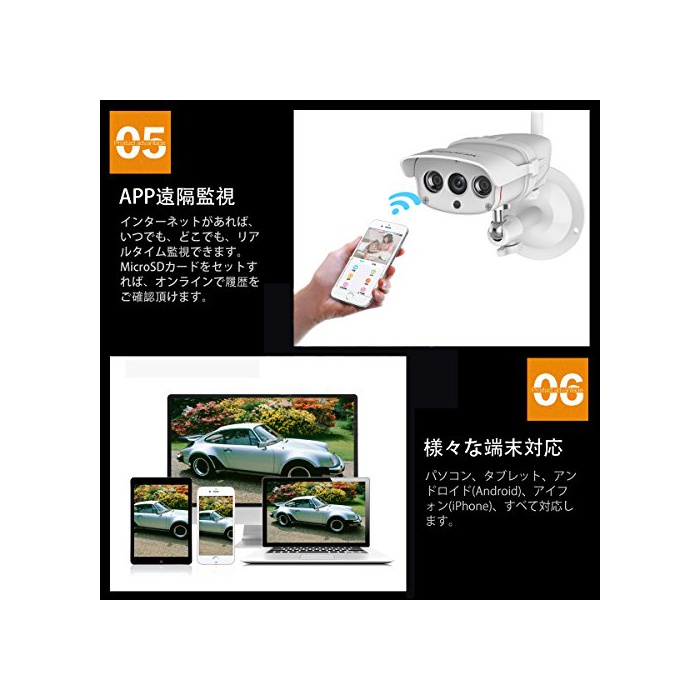 원본상품명: ボディ 720P 100万素 IP67防水 無線ネットワクカメラ IPカメラ 監視カメラ ワイヤレス防犯カメラ 暗視撮影 動知 警報機能 ios/android/windows (屋外型