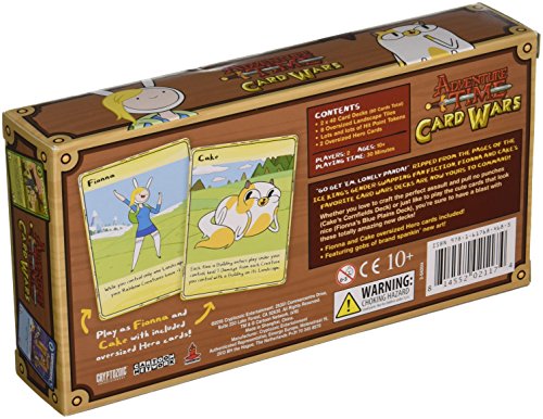 -. Binding : Toy -. Brand : Cryptozoic Entertainment -. EAN : 0814552021174 -. Feature : Based on the Card Wars game found in the Adventure Time episodes of the same name / Includes a code card that unlock special surP.R.Ises the Card Wars digital iOS game / Easy to learn rules! The four lanes focus the action for maximum interaction and fun / All-new, original artwork! / Contains two oversized Hero cards. Play as Fionna or Cake! -. Genre : strategy -. IsAdultProduct : 0 -. ItemPartNumber : 02117CZE -. Label : Publisher Services Inc (PSI) -. Manufacturer : Publisher Services Inc (PSI) -. Model : 02117CZE -. MPN : 02117CZE -. PackageQuantity : 1 -. PartNumber : 02117CZE -. ProductGroup : Toy -. ProductTypeName : TOYS_AND_GAMES -. Publisher : Publisher Services Inc (PSI) -. ReleaseDate : 2016-03-16 -. Studio : Publisher Services Inc (PSI) -. Title : Adventure Time Card Wars Fionna vs Cake Game -. UPC : 814552021174 -. Warranty : No Warranty