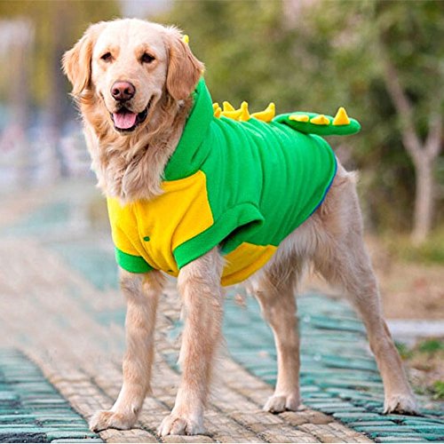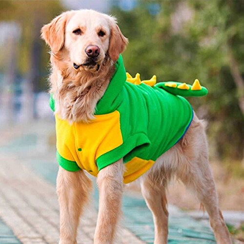 -. Feature : Material: Here comes a type of natural, skin friendly, healthy, fashionable, cute and elegant big dog coat! With Hood and tail design, this designer pet outfit will bring both style and comfort to the most playful member in your family. / With Hood and tail design, this designer pet outfit will bring both style and comfort to the most playful member in your family. / Size: / Package Included: 1*Dog Dinosaur Costume + 1*Silver Metal Bolbove Keychain + 1*Bolbove Towel / Machine washable and easy care,easy on and off with butttons