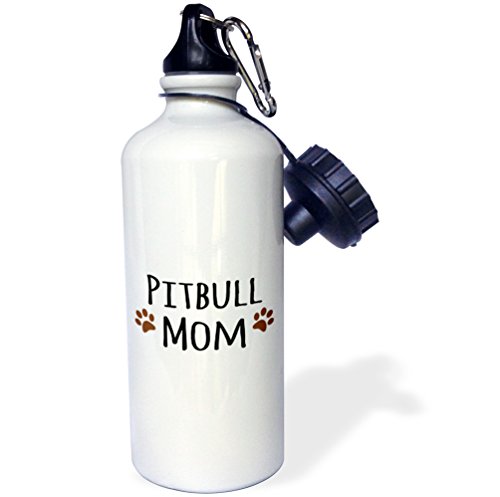 3dRose wb_154172_1 Pitbull Dog Mom-Doggie By Breed-Muddy Brown Paw Prints-Doggy Lover-Proud Pet Owner Mama Love Sports Water Bottle, 21 oz, White